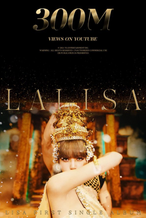블랙핑크 리사의 첫 솔로 앨범 타이틀곡 ‘LALISA’ 뮤직비디오가 유튜브에서 3억뷰를 돌파했다.